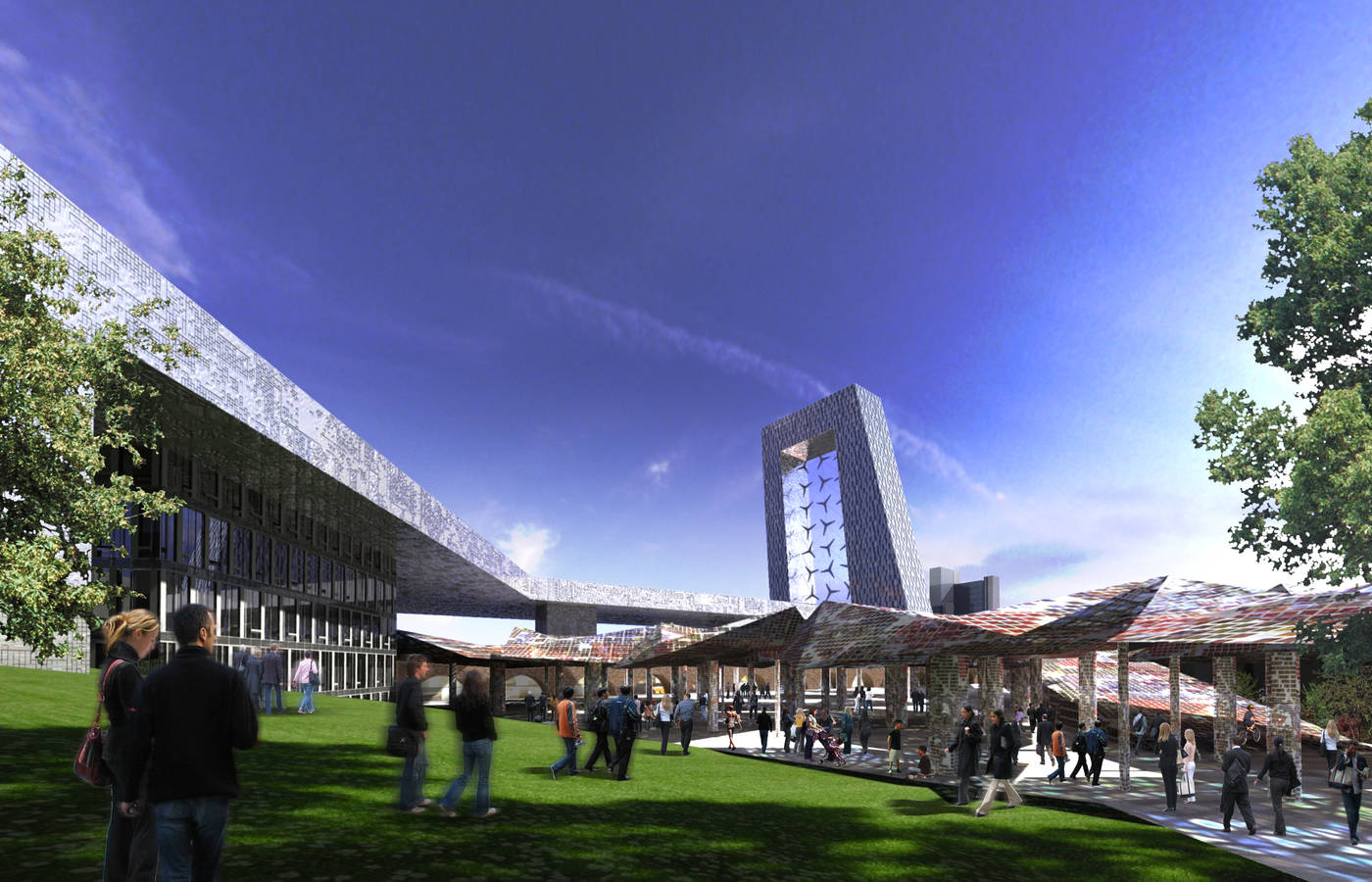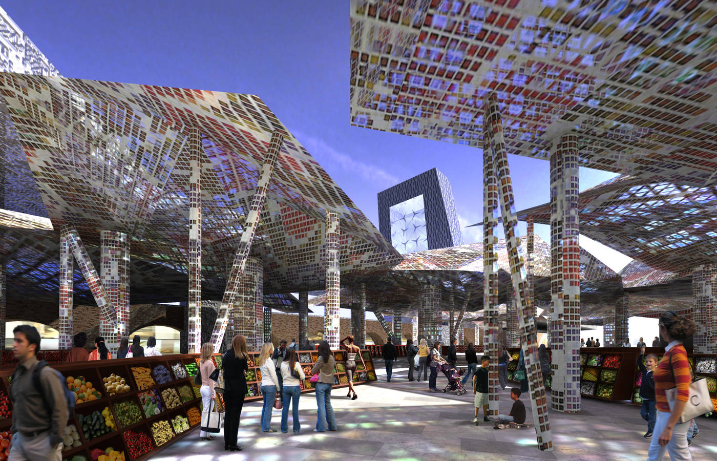 The 1 million sq.m London International Food Exchange Masterplan designed for EPGI reorganizes and integrates London’s wholesale center for produce and flowers with related and supporting commercial, educational, and residential uses. The 56-acre market is both the largest wholesale fruit and vegetable market and also the largest independent flower market in the UK. Plazas of diverse character associated with each of the site’s principal zones will create a multi-layered, varied street-level experience: Broadcast Square is a digital garden supporting wireless access and projection; Station Square is oriented around an integrated rail hub; Hotel Courtyard is defined by high end hotels and is a place to see and be seen. The plan encourages the development of culinary research and educational institutions by providing space for classroom facilities, laboratories, a library, and a Museum of Gastronomy. The plan also designates commercial spaces and residential zones, all with easy access to the New Covent Garden Market. In collaboration with SOM.