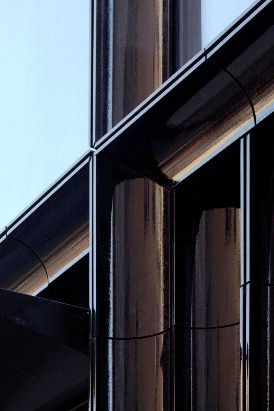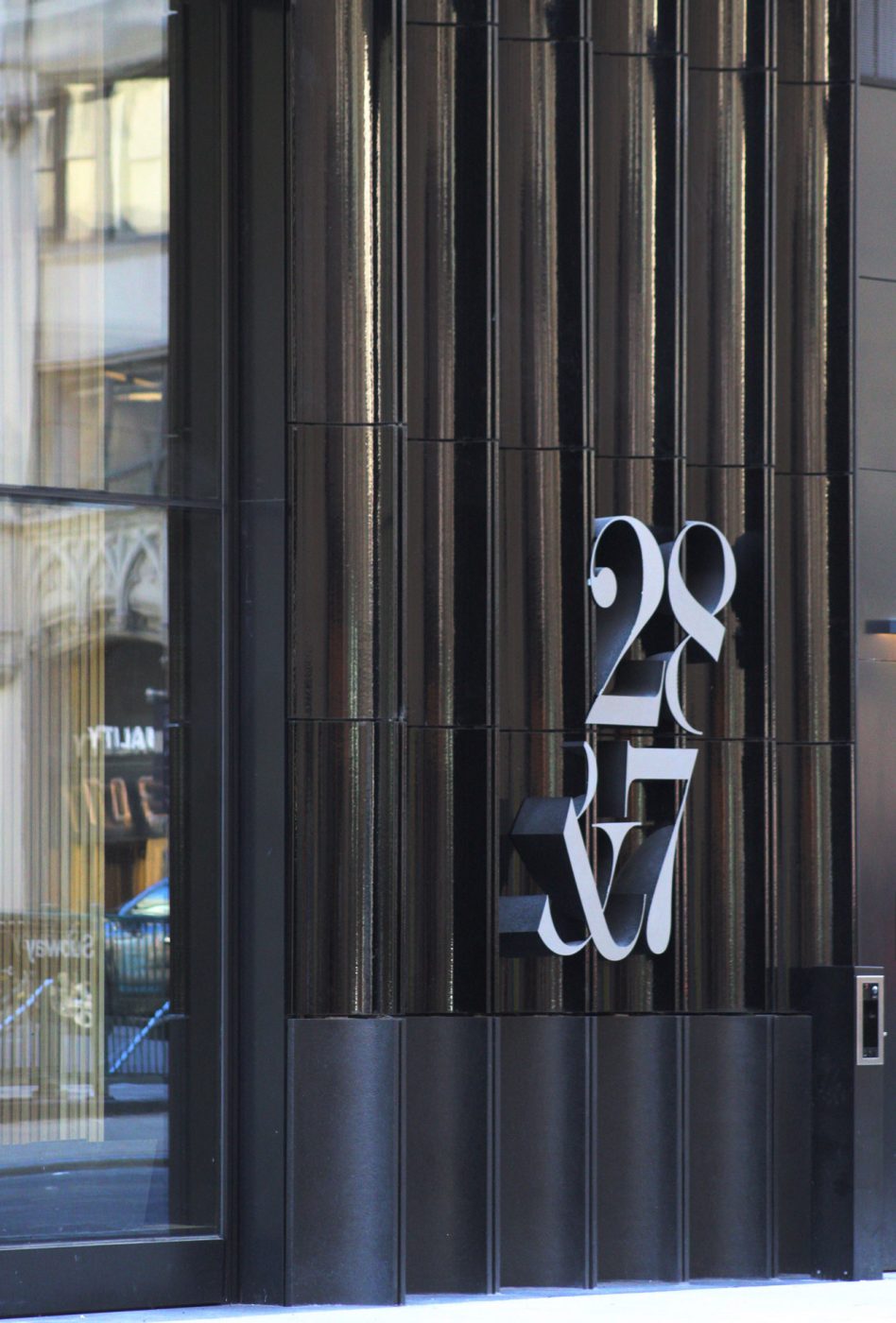 Recent photos show the finished look of the glass and terra cotta exterior. Since our last update in October, all of the sidewalk barriers, metal fencing, and remaining equipment have been removed from around the ground floor, and the property’s logo has been installed in front of the fluted terracotta paneling next to the main entrance on 28th Street. Interior work should be nearing completion shortly as well.