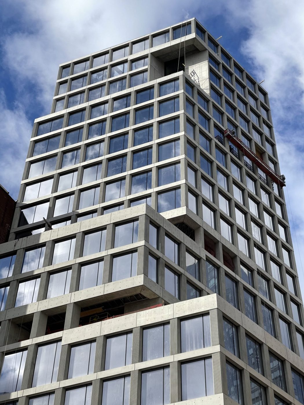 Since our last update in late October, nearly all of the remaining windows have been installed. Sidewalk scaffolding still surrounds the ground floor, but should be removed in the coming weeks.
