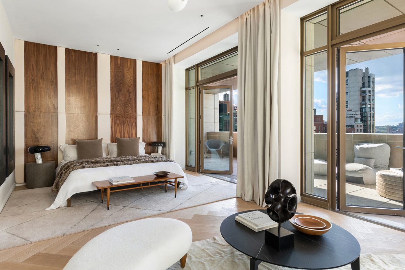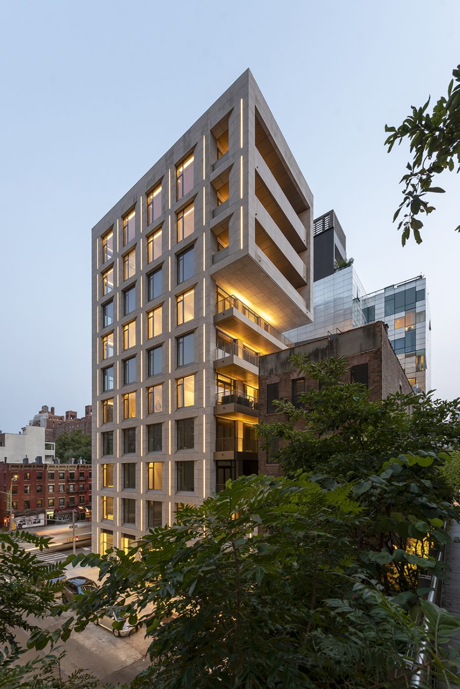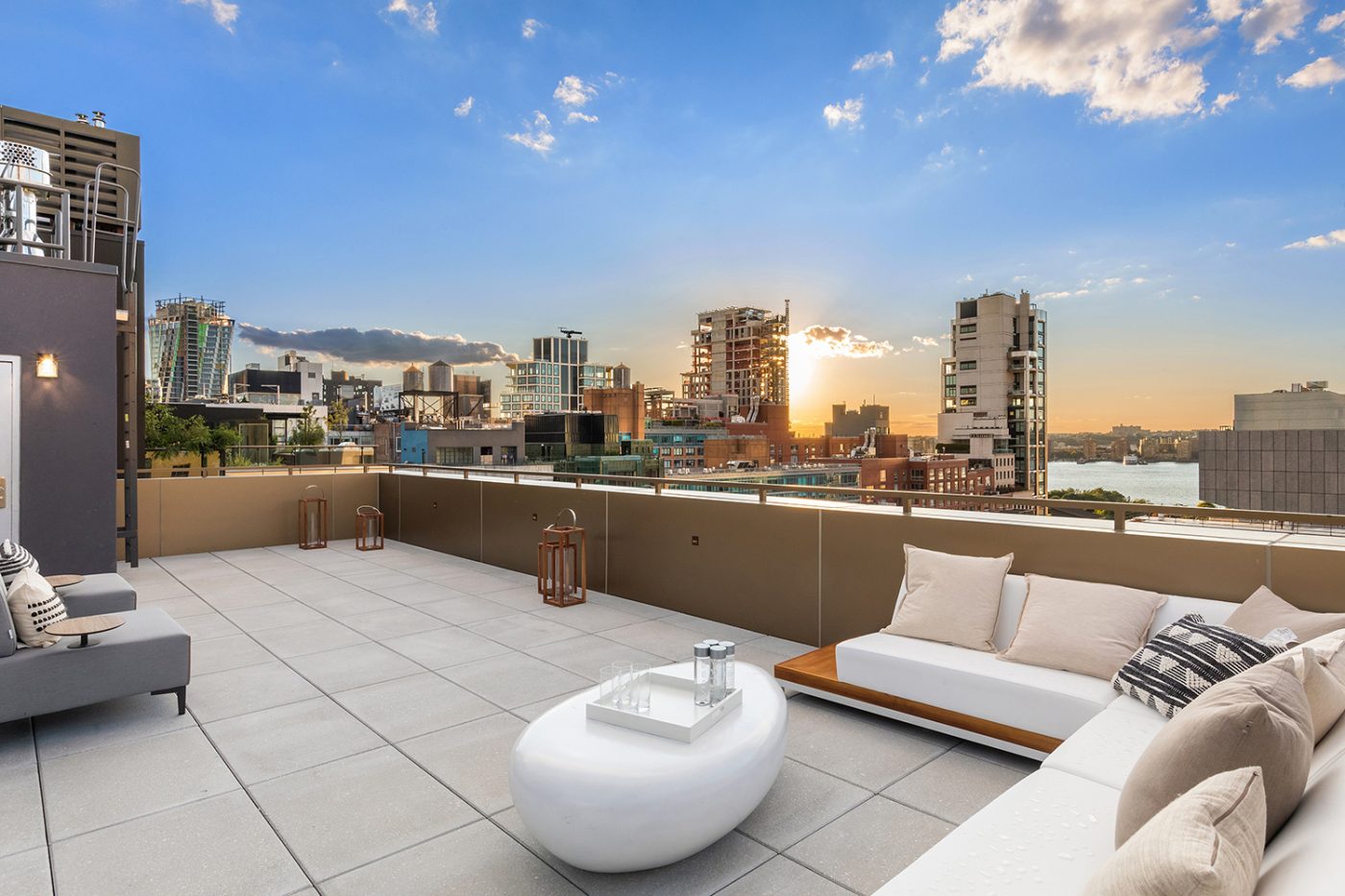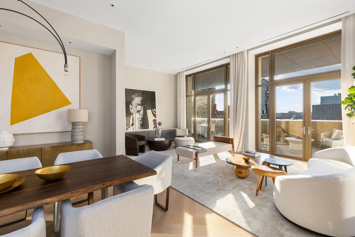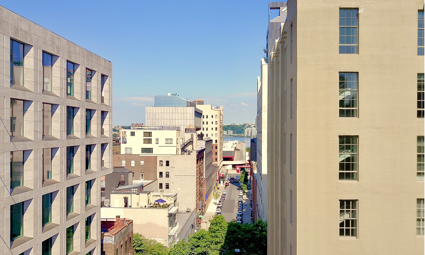 All apartments have ceiling heights of 10′-6″-12 feet, outdoor terraces, wide plank white oak wood floors, luxurious finishes, Gaggenau appliances, and imported marble kitchen countertops. Each living and bedroom in every apartment will have direct Highline views, and upper units will have views of the Hudson River, as well as the Empire State Building.