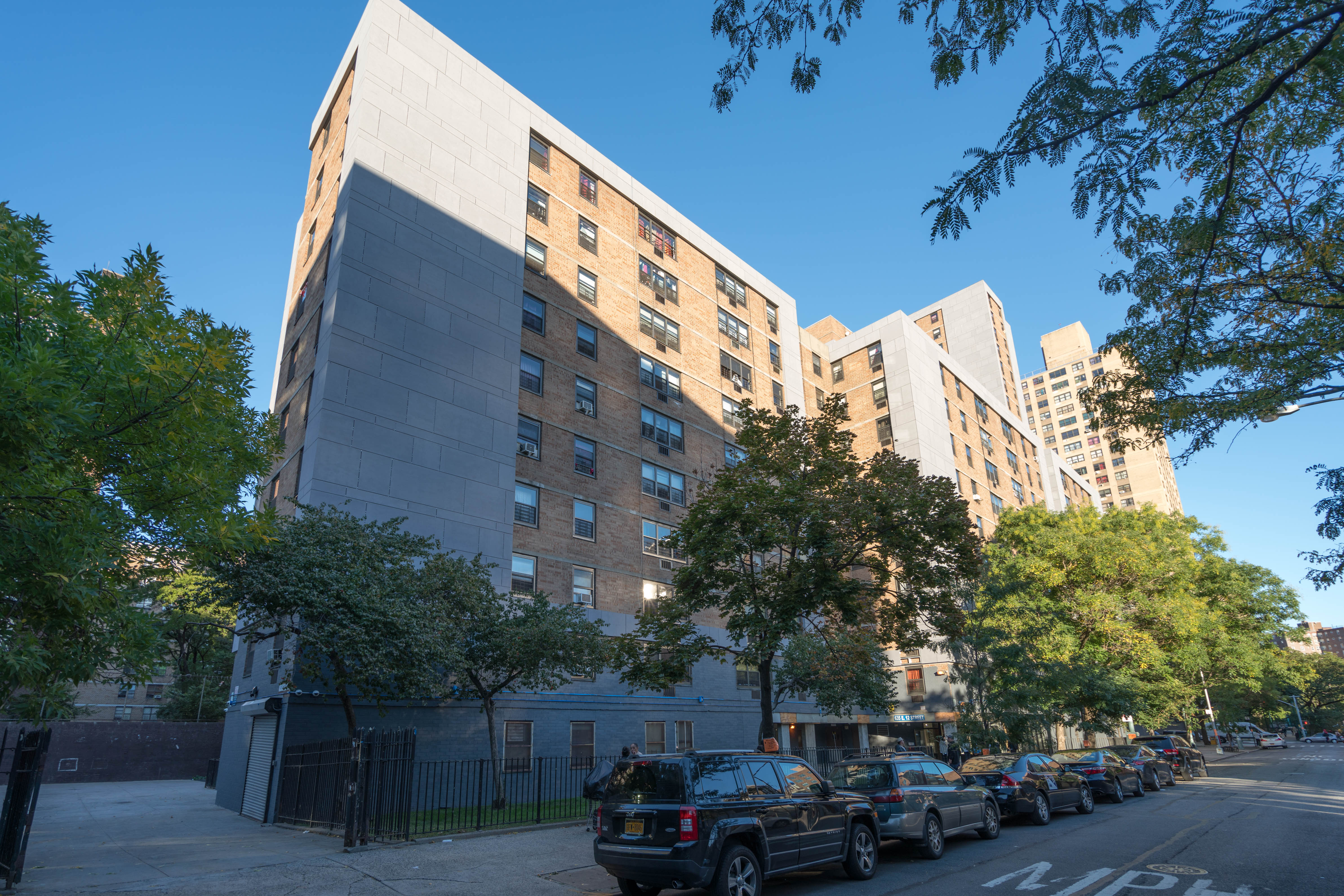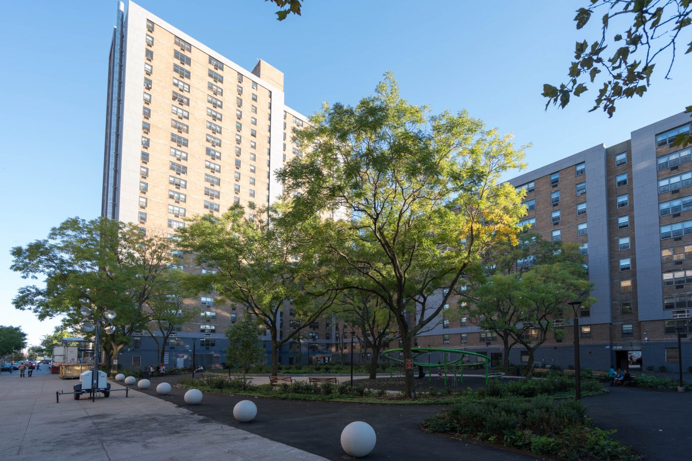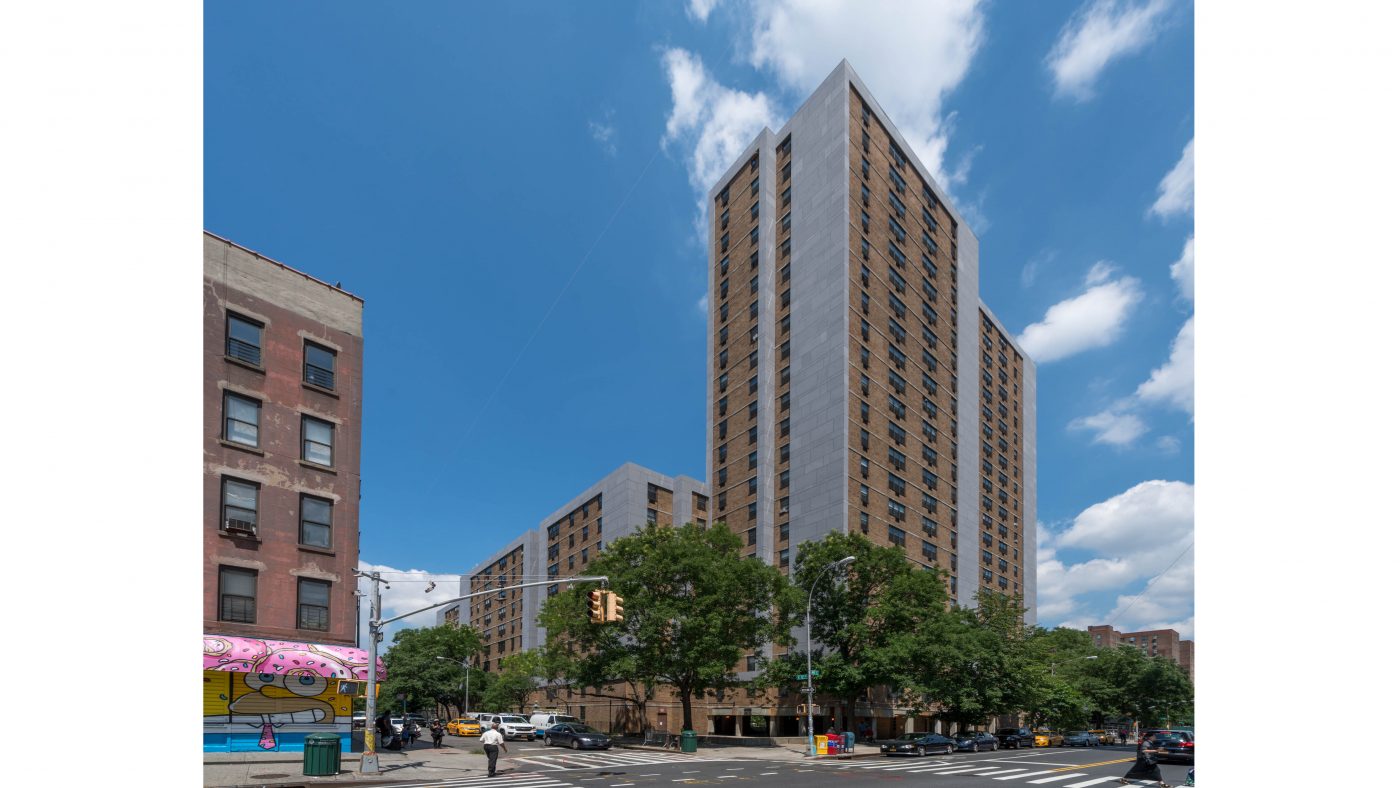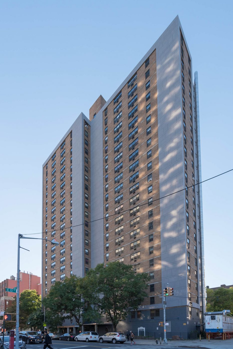 The project developers engaged GDSNY to design a striking contemporary language for the building exteriors, as part of the revitalization of this well established East Village community. Renovations for the broader project include comprehensive façade and roof insulation and waterproofing, a major infrastructure modernization, interior renovations to all apartments as well as a substantial landscape and hardscape revitalization, and project rebranding. GDSNY’s design also included the trasnformation of 20,000sf of outdoor space into new parkland.