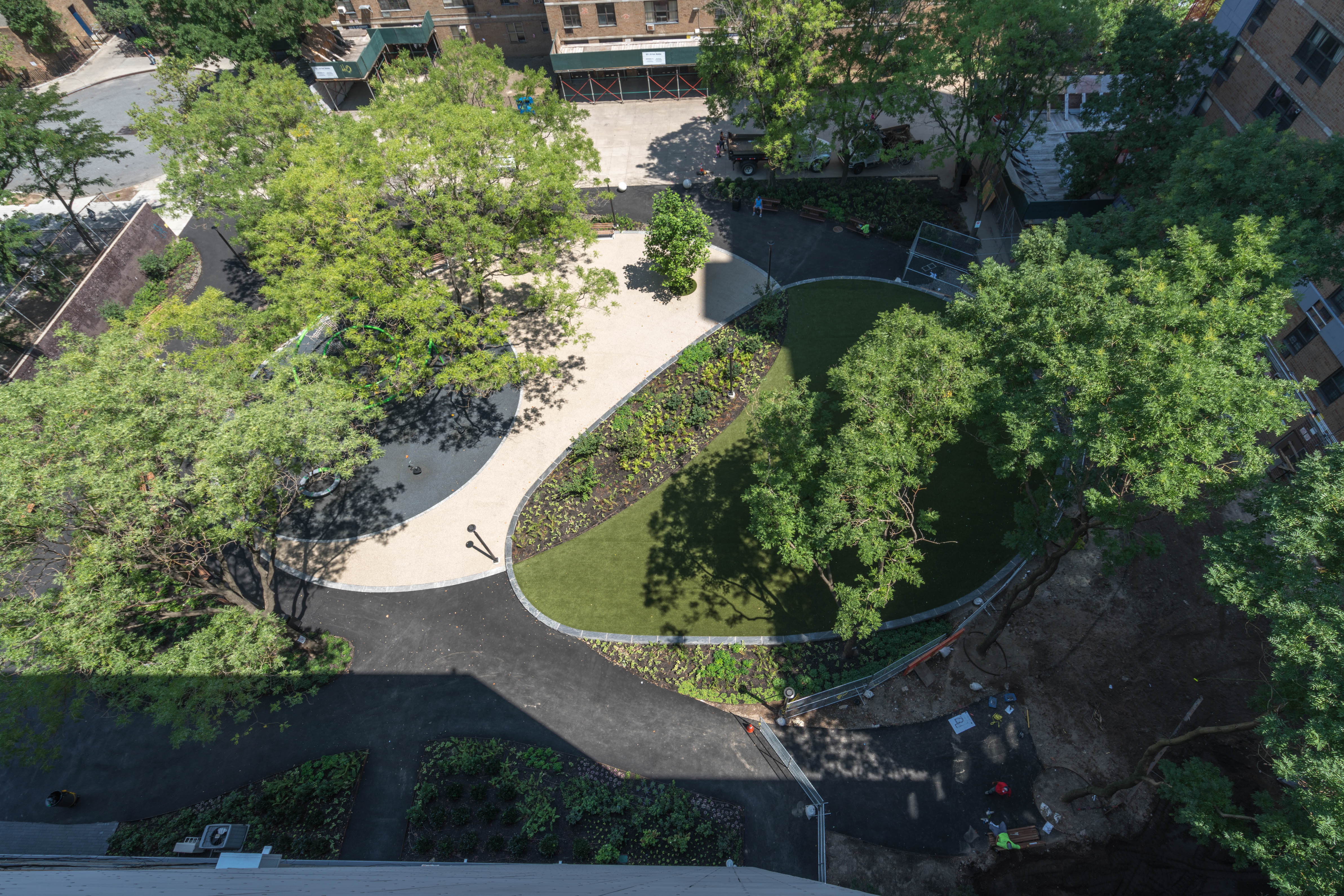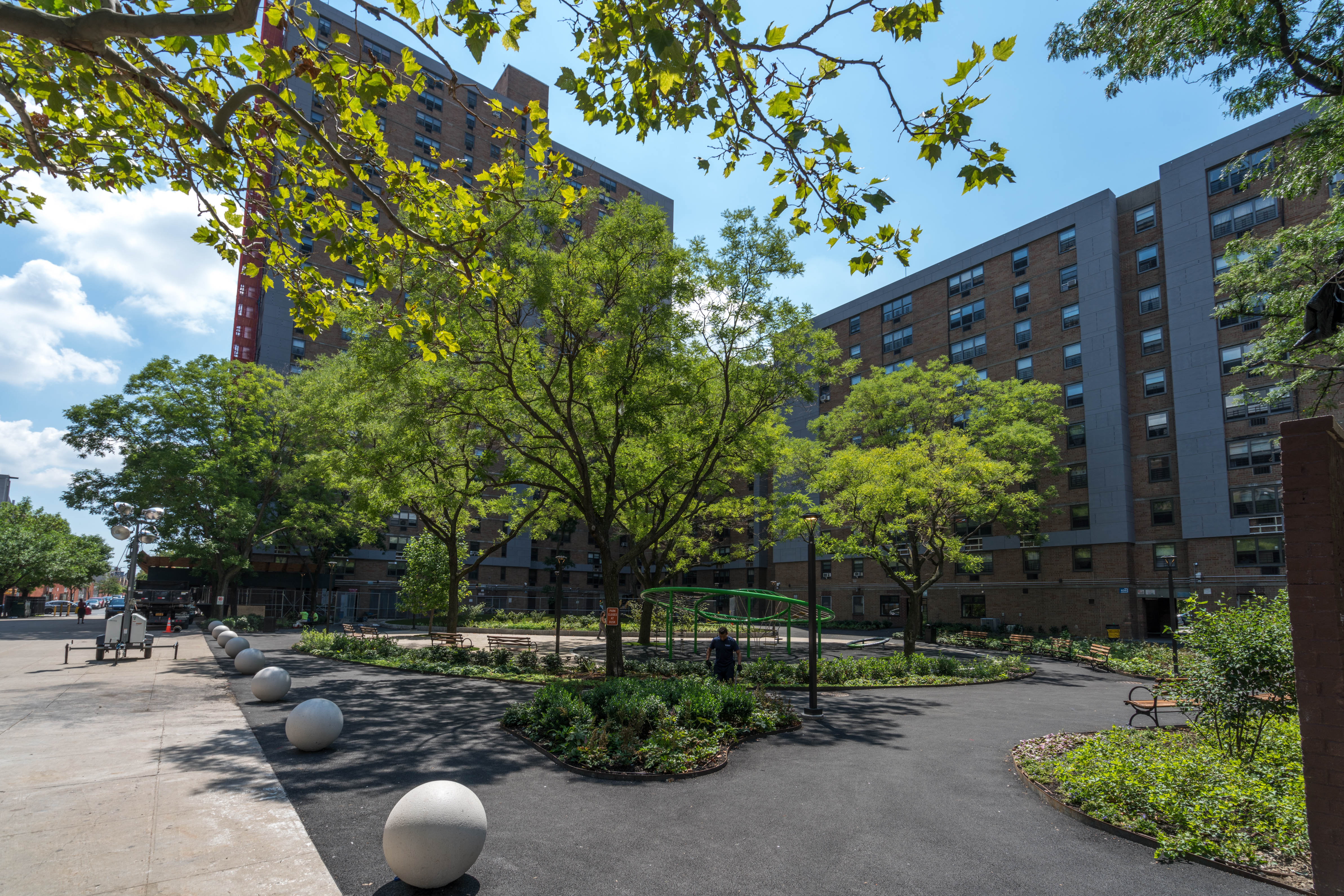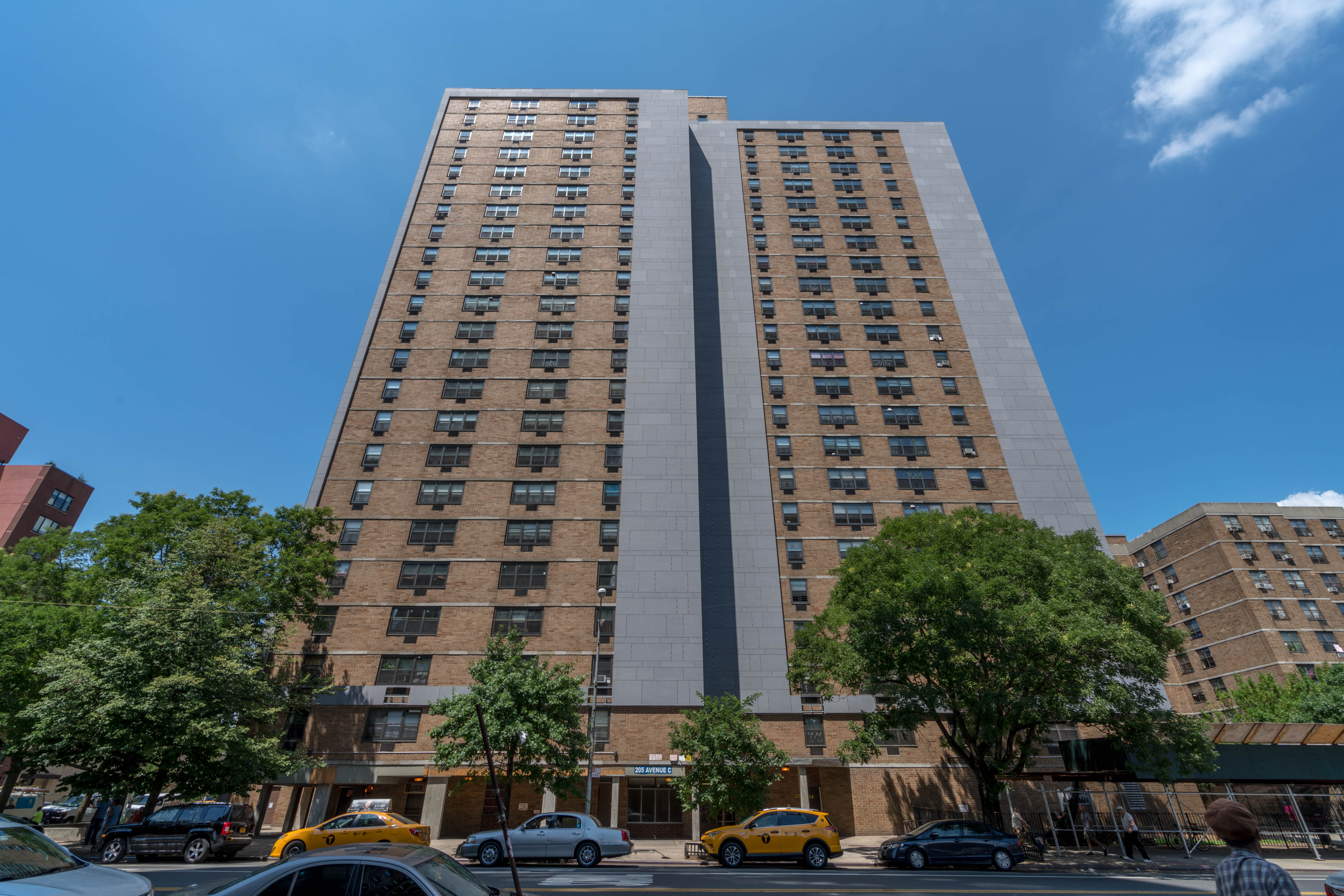 The project developers engaged GDSNY to design a striking contemporary language for the building exteriors, as part of the revitalization of this well established East Village community. Renovations for the broader project include comprehensive façade and roof insulation and waterproofing, a major infrastructure modernization, interior renovations to all apartments as well as a substantial landscape and hardscape revitalization, and project rebranding. GDSNY’s design also included the trasnformation of 20,000sf of outdoor space into new parkland.