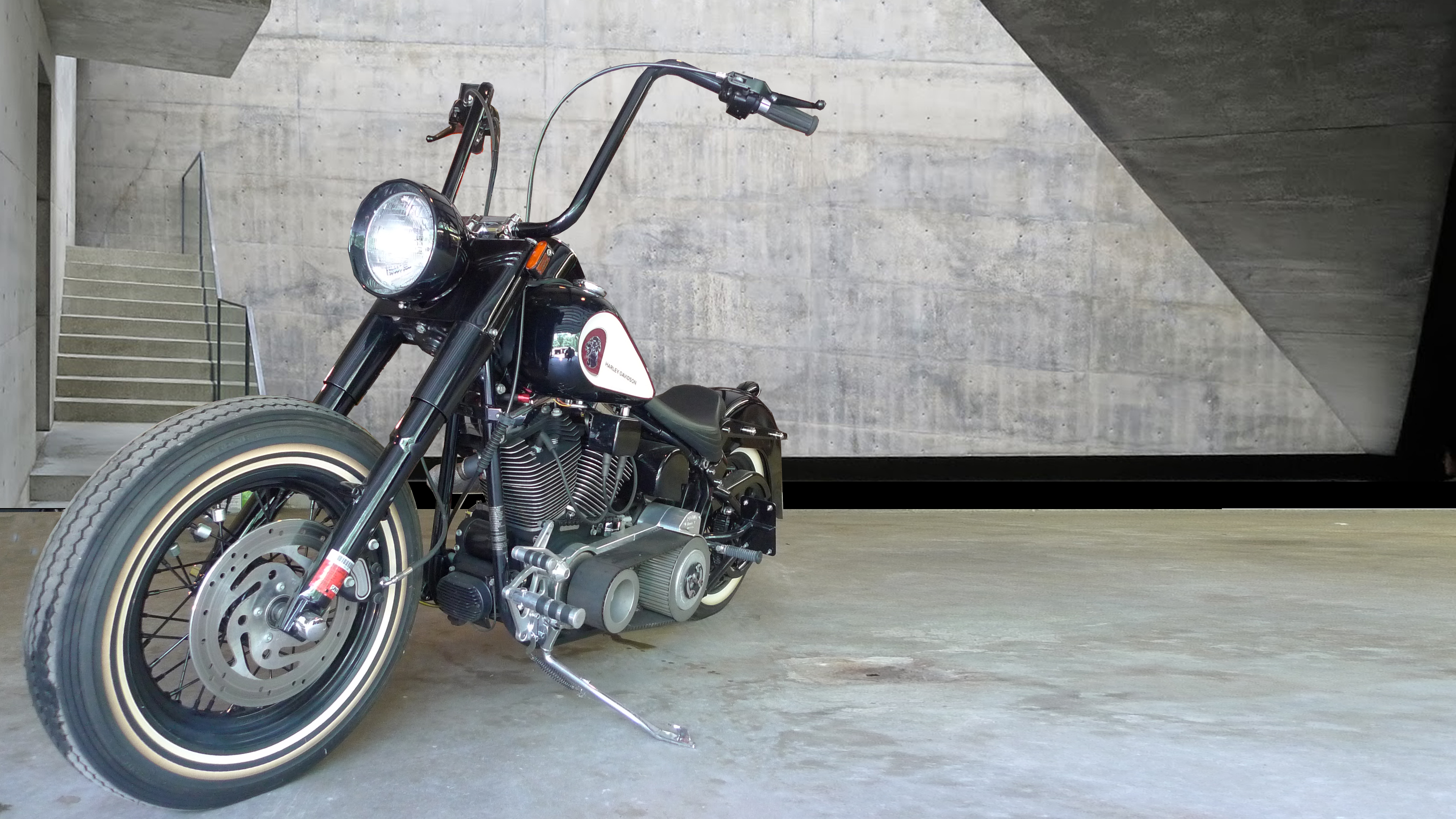 GDSNY designed a ‘bobber style’ chopper from the ground up using a 2002 Harley Davidson Fatboy.