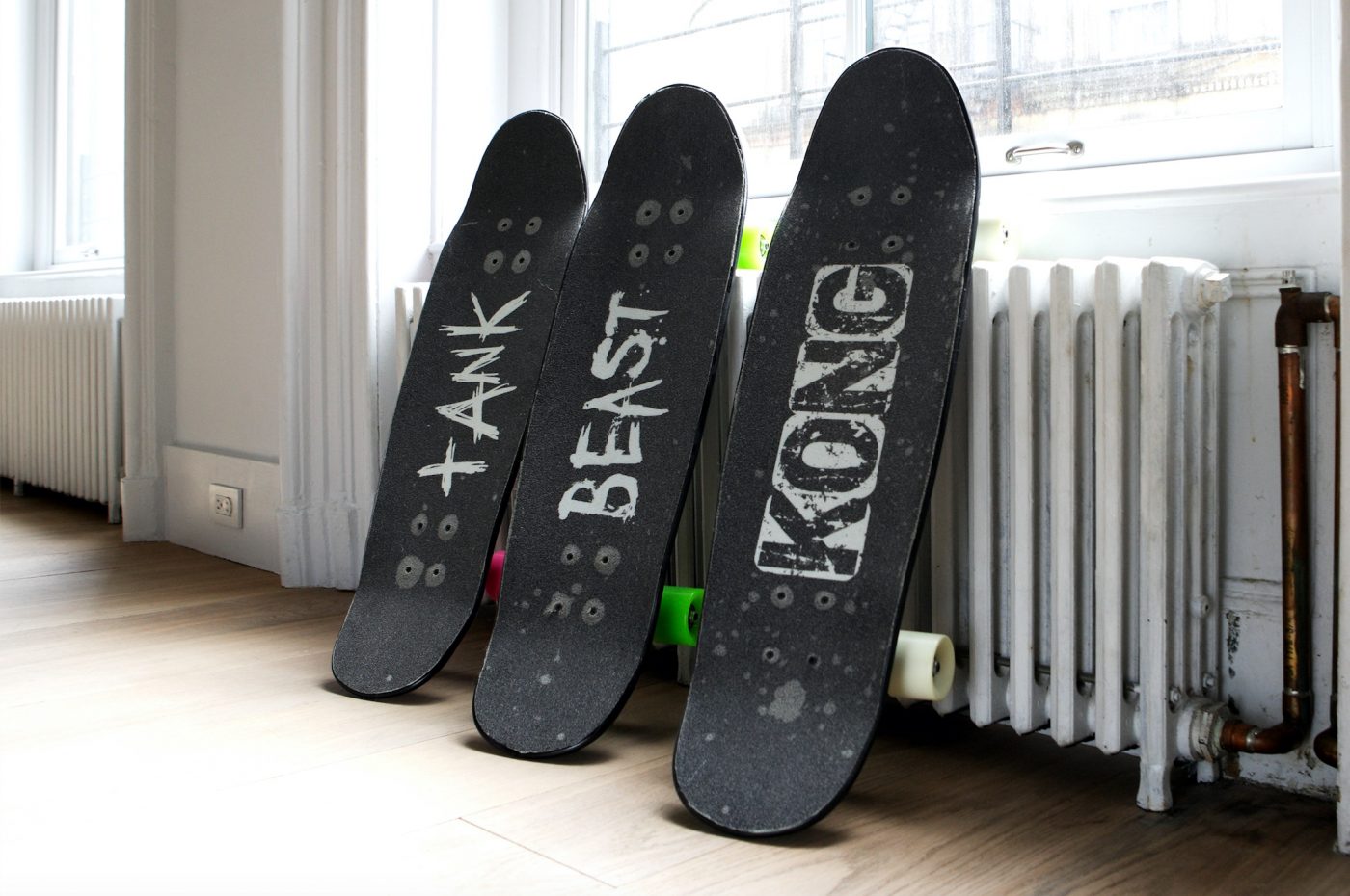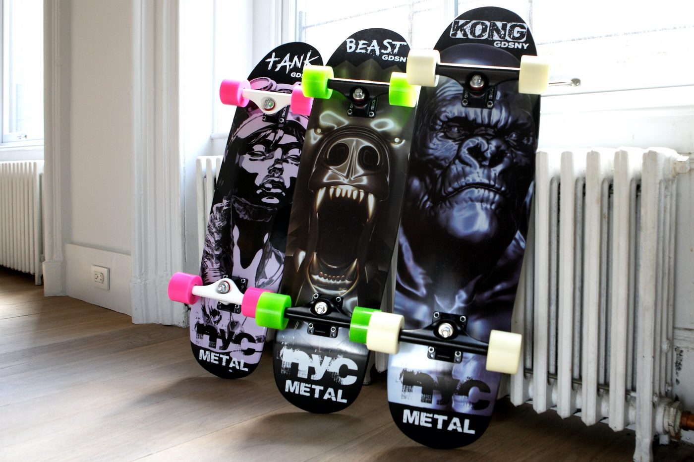 GDSNY designed a series of custom boards for Skateboard talent agency FSA. The 3 boards, named KONG, Tank and Beast, were inspired by childhood classic movies. The characters were modeled in 3D Studio Max and a METAL was assigned to the surface to produce the images used for the production.