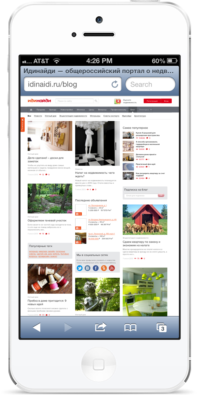 GDSNY provided full design services as well PR, media, and brand communications. Idinaidi.ru is the fastest growing real estate portal in Russia. It is the most followed real estate site on Russian social networks. It was the first real estate site to be launched as a national mass market resource to connect Agents, Banks and Developers with Clients, and has a diversified revenue model including subscriptions, developer listings, owner listings, paid leads to the banks, mortgage commissions and advertising.