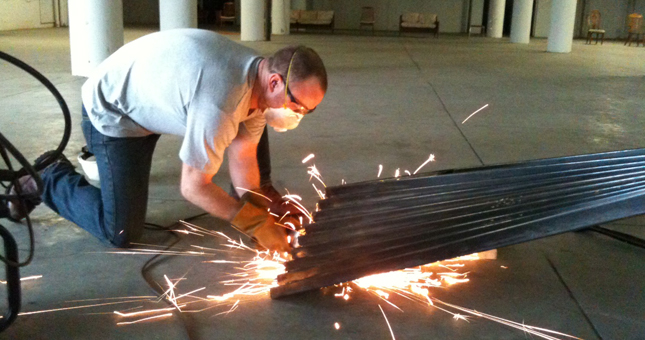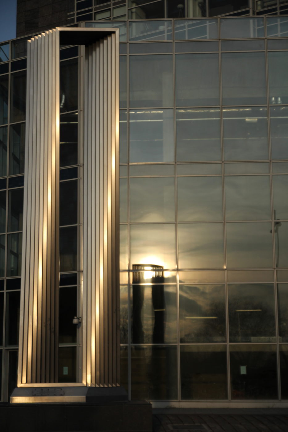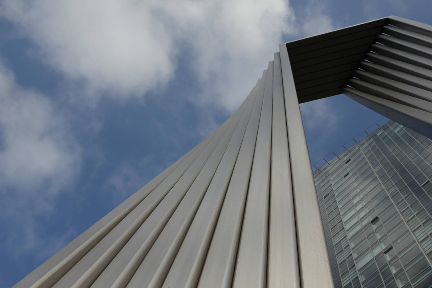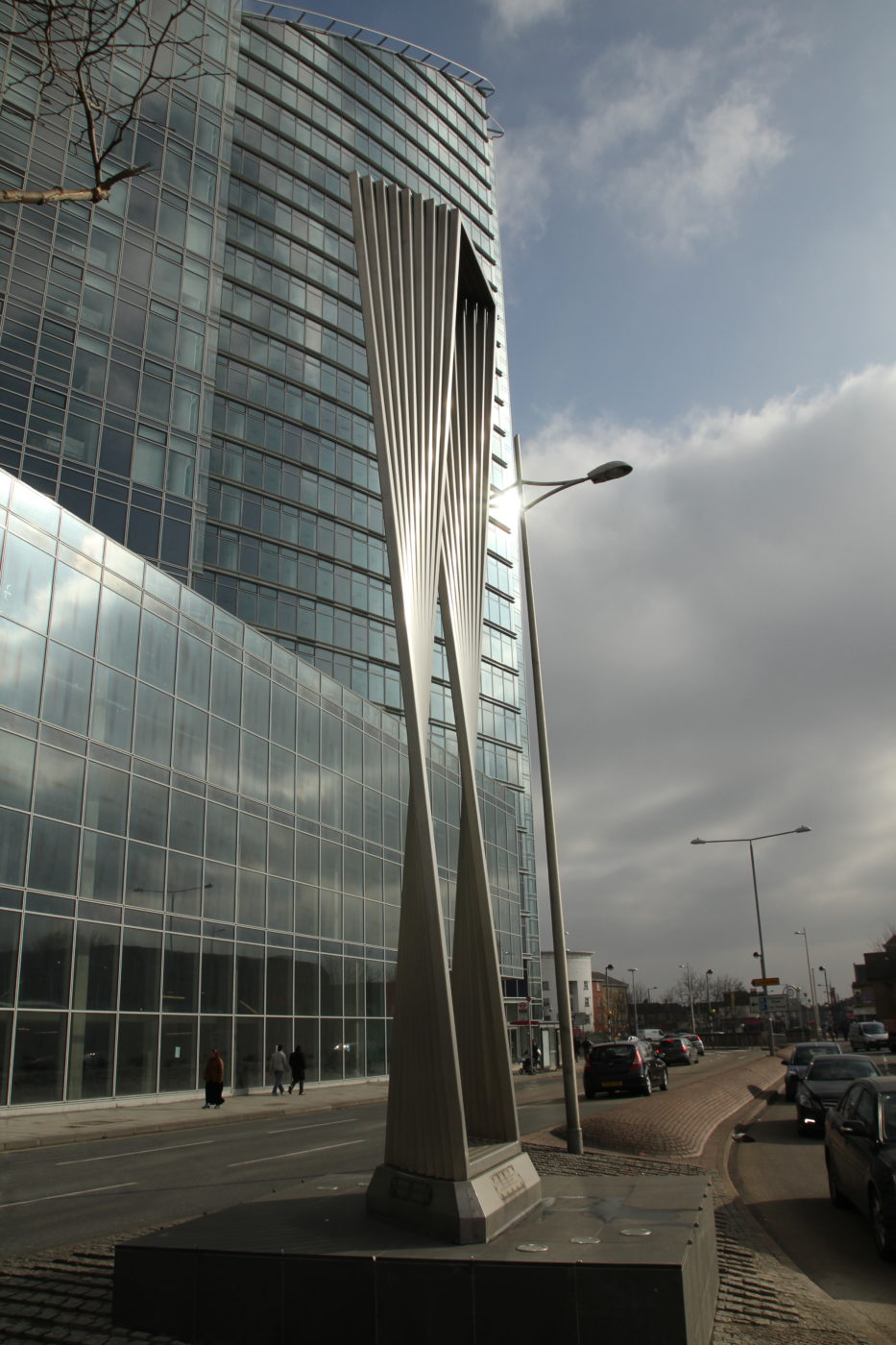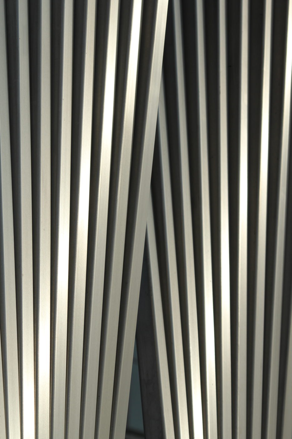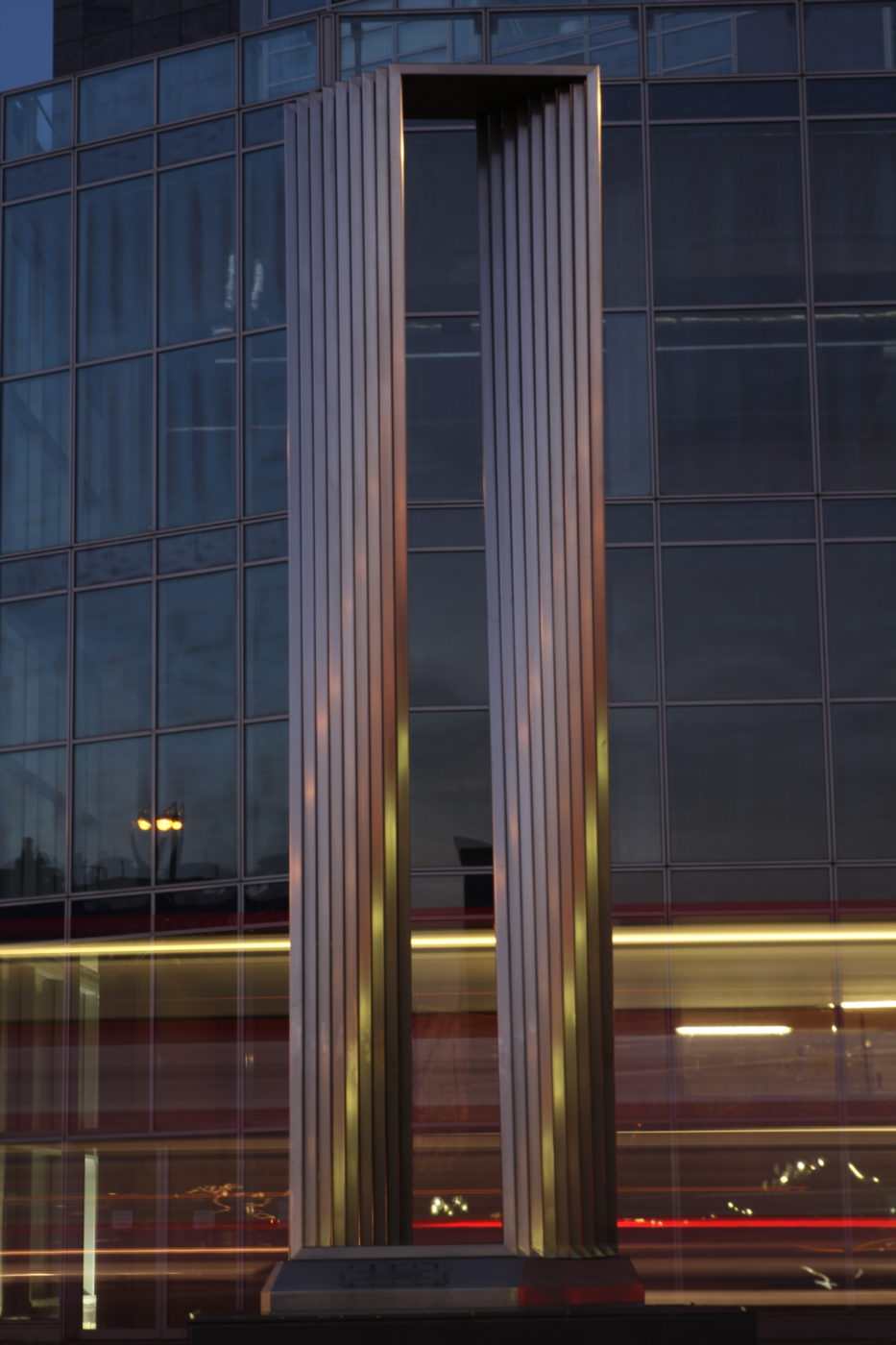 The sculpture, called Pioneer’s Gate, captures the period of exciting growth that is underway in Ilford, London. Pioneer’s Gate is made of nine reciprocally linked rectangular steel frames which nest and intersect each other, creating a vibrant elongated form that spirals upward, inspiring a sense of change and development. Located at a bustling intersection of pedestrian and vehicular traffic, Pioneer’s Gate offers a progression of views reminiscent of stop motion photography as one travels around the work. As Pioneer Point is a gateway to Ilford’s future, this sculpture stands as an opening to the imagination and spirit of those who will see it every day. Selected photos by Joe Hancock